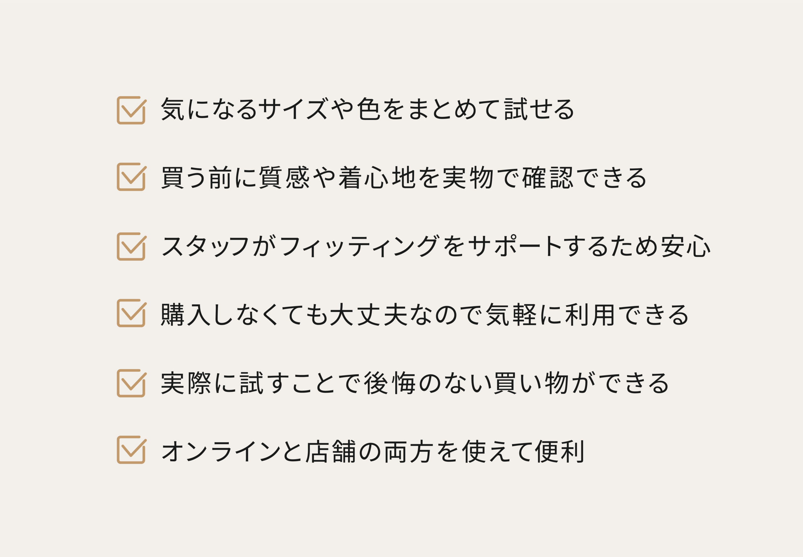 オンラインで選んだ商品を、購入前に店舗へ取り寄せて試せるサービスです。