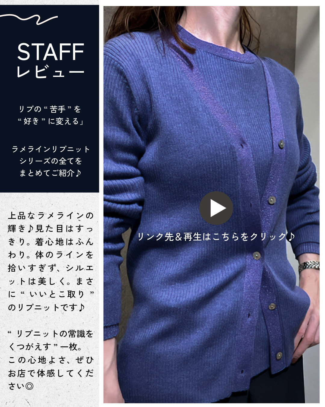 柔らかく体を包み込み、体のラインを拾いすぎない絶妙な編み方で仕上げました。 端にひとさじ加えたきらきらラインが、軽やかに見せてくれるシリーズです。
